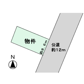 | 接道状況 | 東側が約12m公道に約8.6m接する | ||